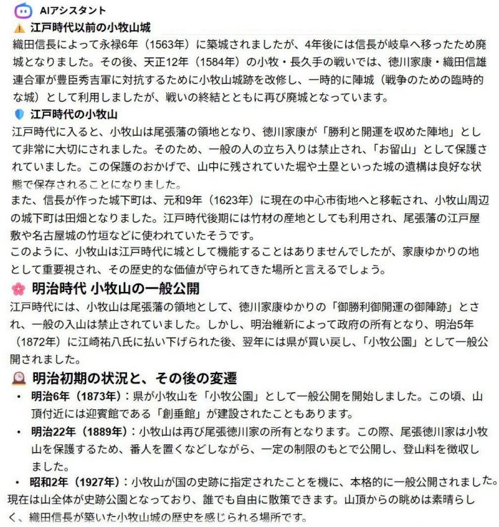 | 小牧中学校が移築された後の小牧山城 (『Walkerplus』より) |