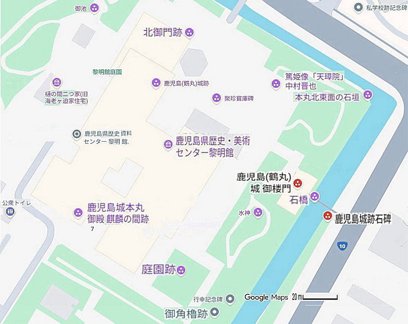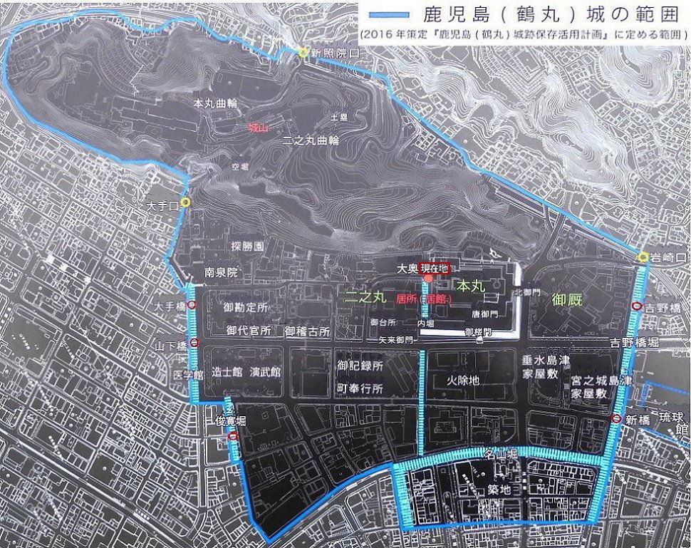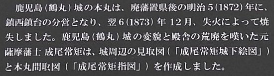 鹿児島城は、明治6年の火災で本丸が、明治10年西南戦争で二ノ丸が焼失し、
