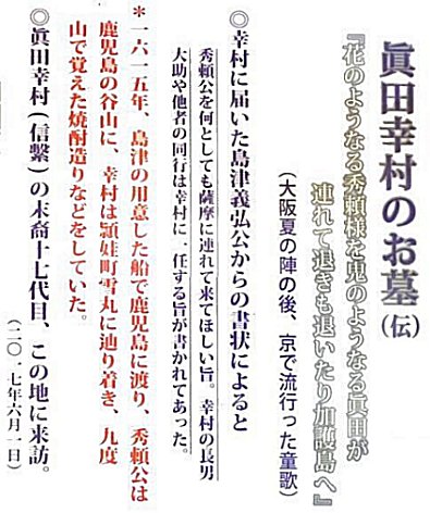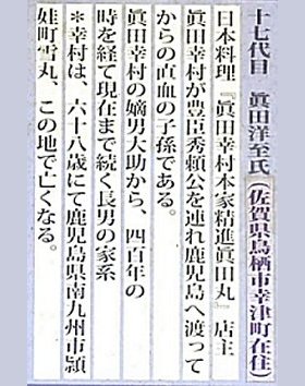 ておられて、信繁さんの末裔の方は佐賀県にお住まいなのだと、分りました。
