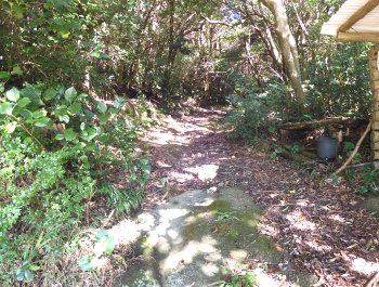 この小屋(?)の左側を登ると、お墓に行けるようです。 |