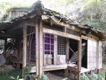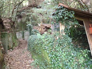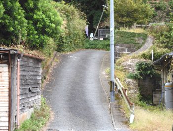 | 解説版に向かう坂ですが、この辺りから廃屋が続きました。 |