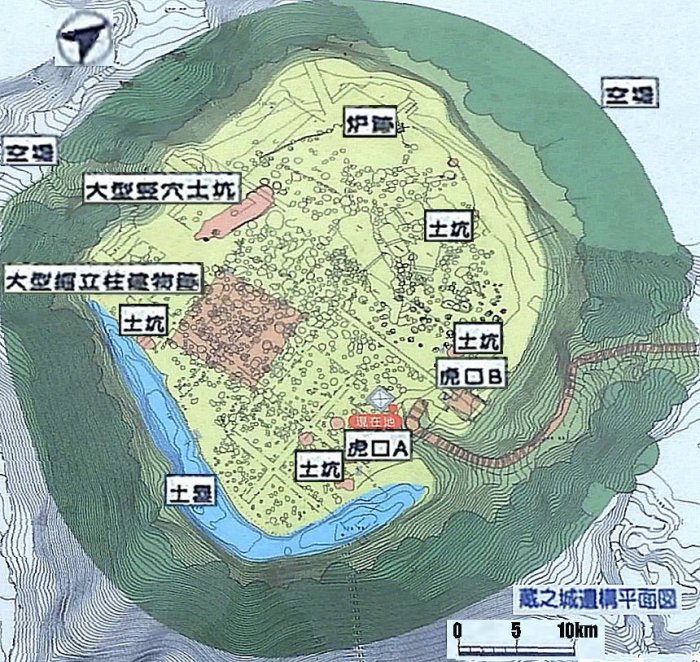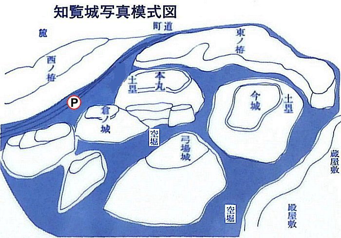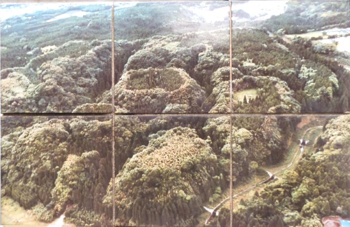 航空写真からも良く分かります。車をパーキングにおいて、まず蔵之城に登り、次い
