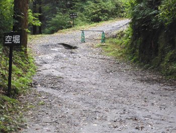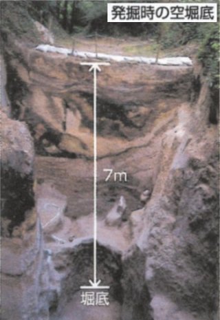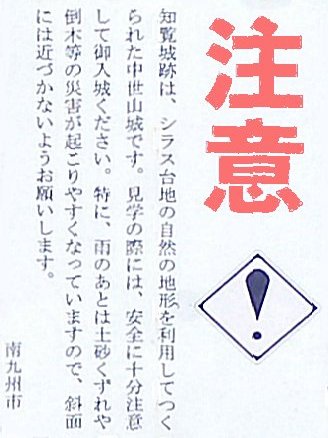 知覧城の見所は、浸食谷を利用した空堀の深さです。その深さは案内板にあった