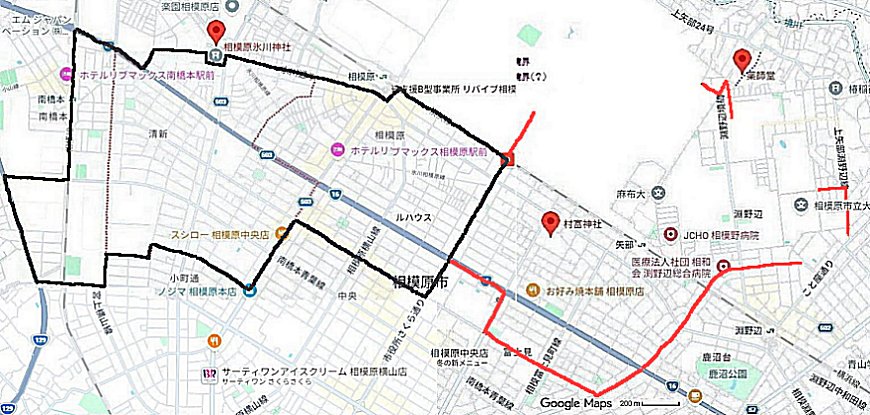 正しく囲えたかどうか分りませんが、現在の相模原市の中心部を覆っていることが、分かっ