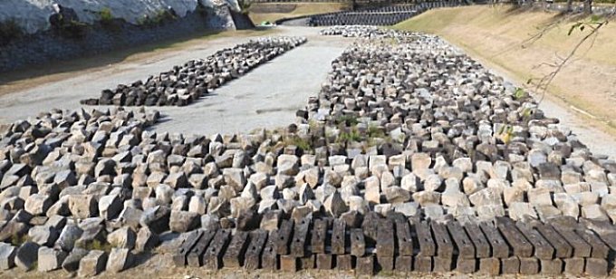 | 天守閣前広場の片隅に、西南戦争の遺物が展示してありました。 |