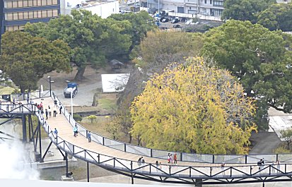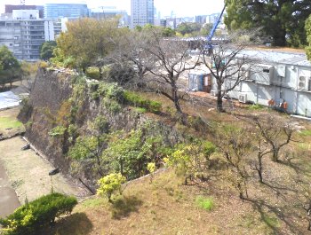 下は、ホテルのテレべーターから撮った熊本城です。