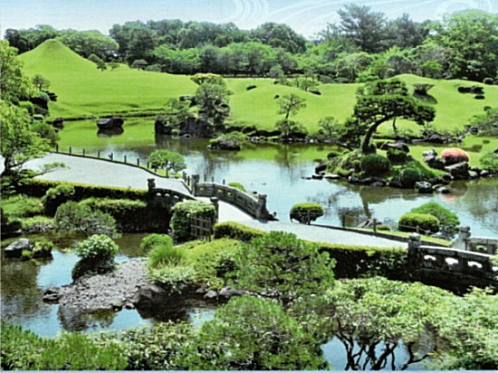 西南戦争で荒廃後、美しく復元された水前寺成趣園(北の丸町2−25) |