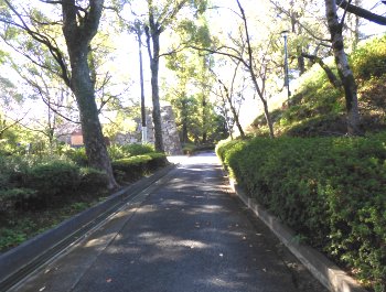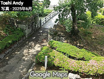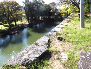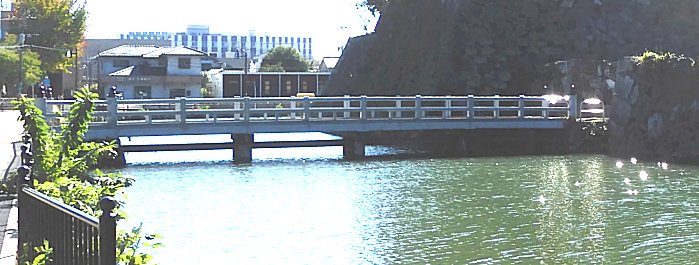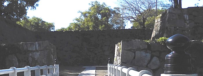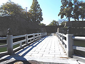 まずは、三階層櫓跡をお堀越しに見てから、欄干橋を通って城内に入りました。