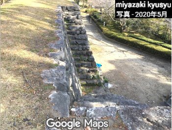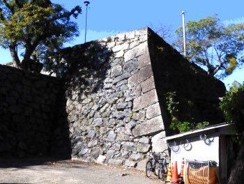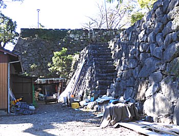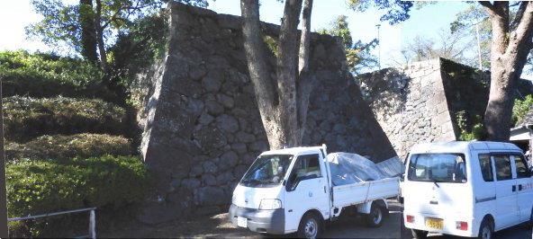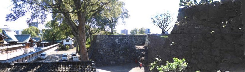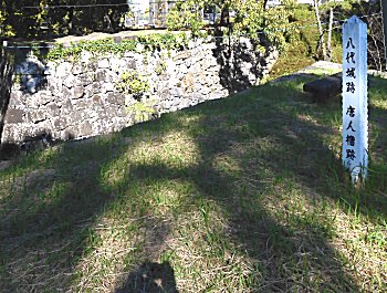 八代宮が建立されて、参道のために石垣が壊されているのを見る