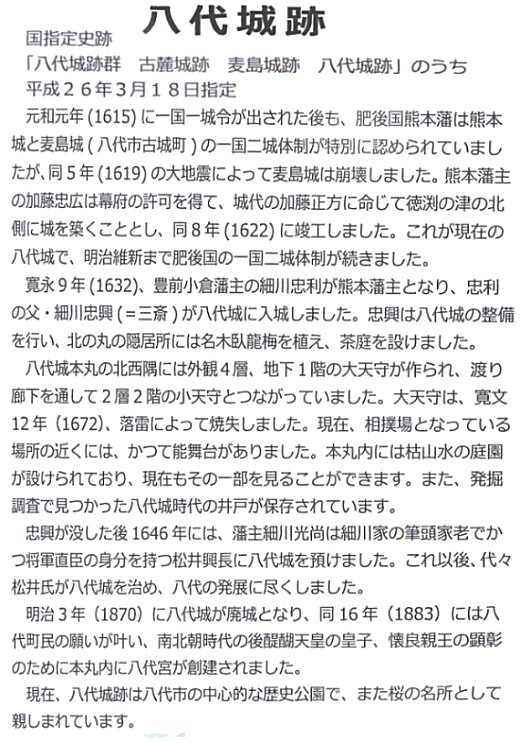 八代城は、石垣が良く残っていますが、本丸御殿があった場所に
