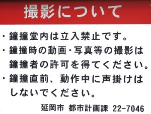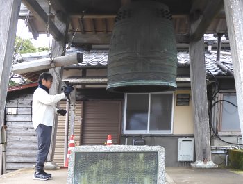 許可を得て、鐘撞きの様子を写真に撮らせて頂きました。 |