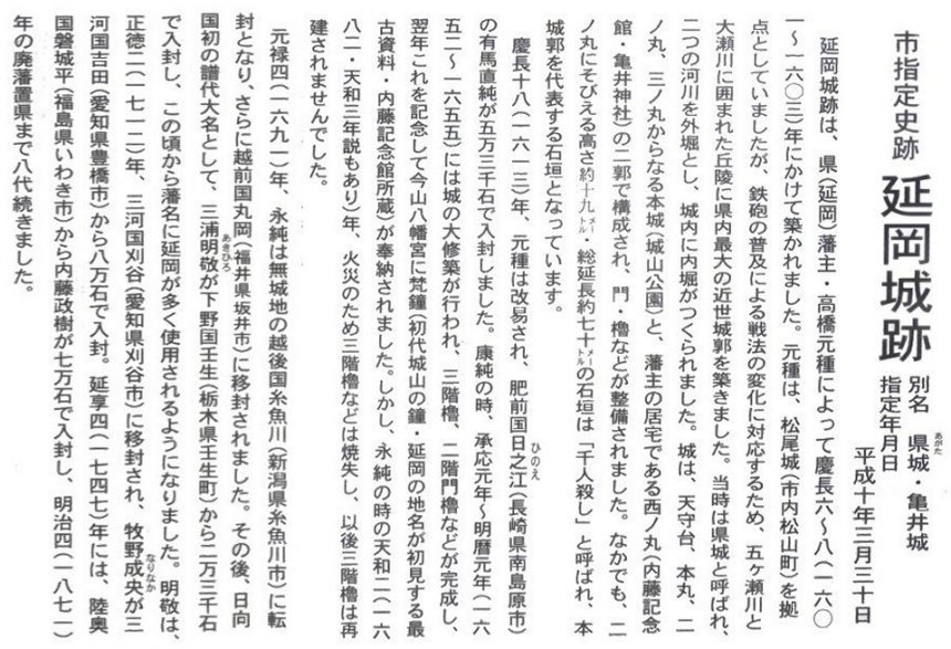 延岡城は西南戦争で薩摩軍として戦い、太鼓櫓が焼失する等、度々の火災に遭い、