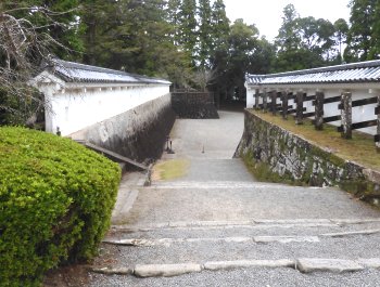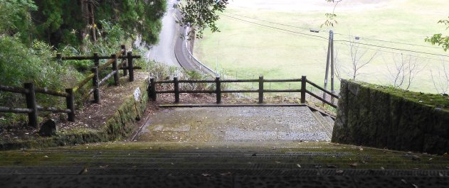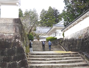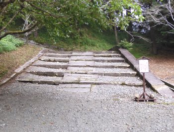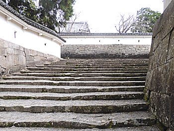 | 階段を上った所・左を上ると松尾の丸、小学校の脇を直進すると旧本丸です。 |