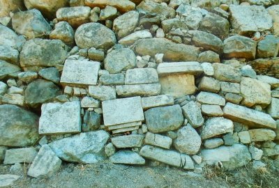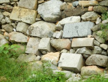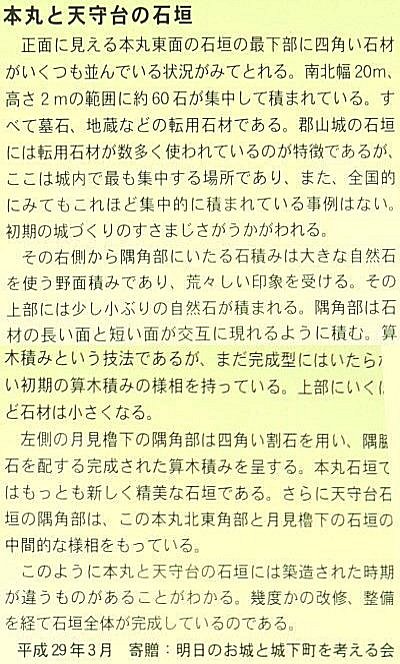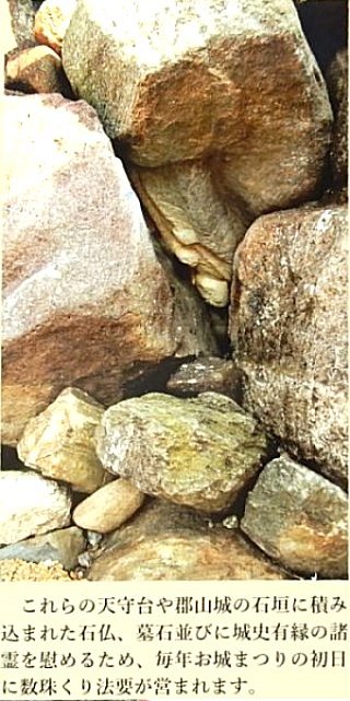 郡山城は、豊臣秀長によって拡張されました。その時石垣の石が不足したので、墓石や地蔵等を使ったの