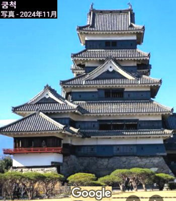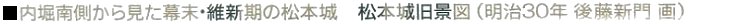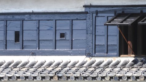 | 下見板を張ってある。月見櫓は天守建築には珍しい殿社風○○3方に漆塗りの回廊をめぐらしてある。 |