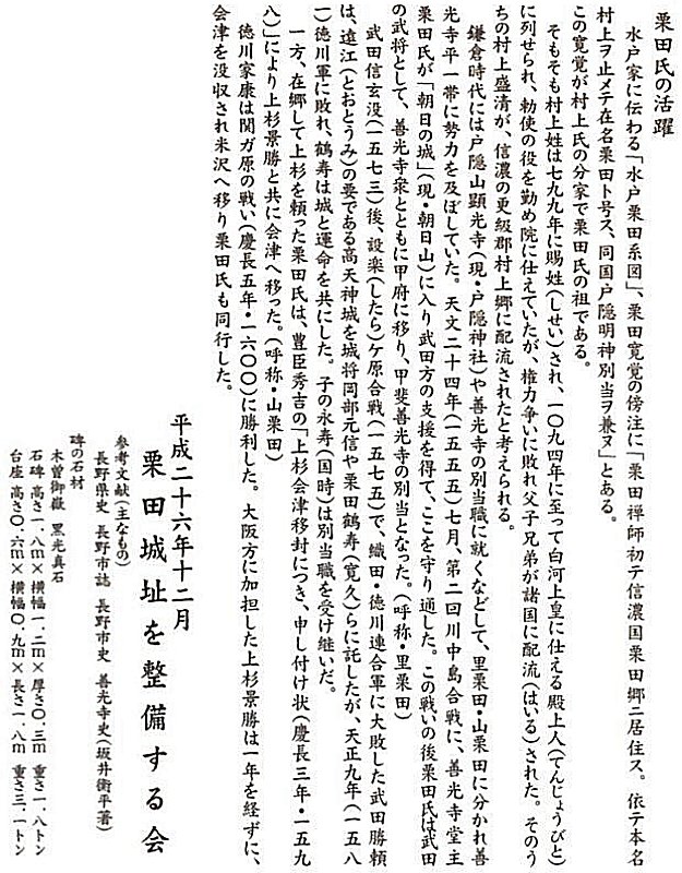 栗田城は川中島に近いので、きっと戦火に巻き込まれたのだろうと思