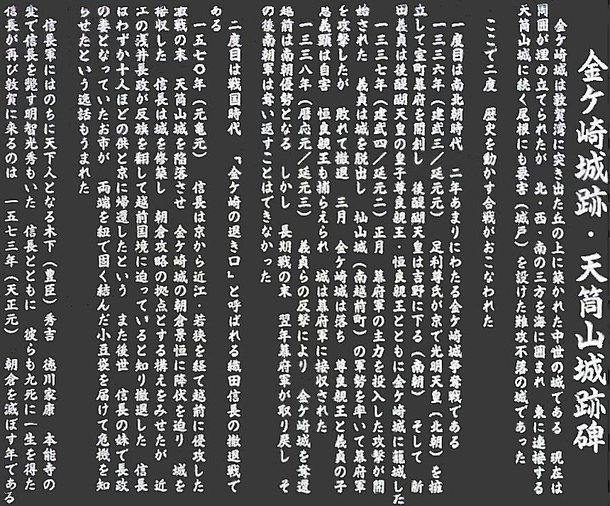 | の金ヶ崎城でも激しい攻防戦が行われたが、戦ひはわずかに1日で幕を閉じ結果は南朝方の完敗に終 |