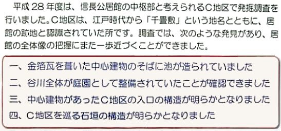 現地で、織田信長居館跡をCG等でで再現した動画を見ることができました。