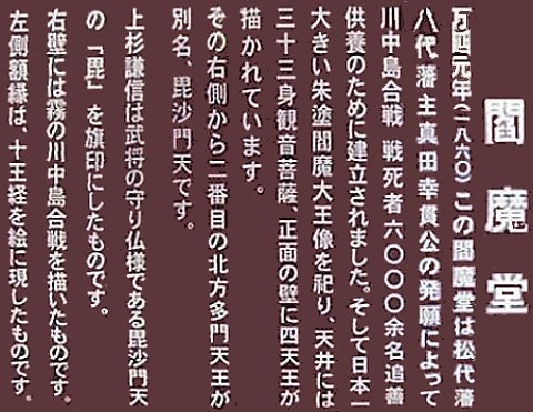川中島合戦で死んだ6000余名の追善供養のために建立されたものです。