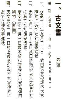 寺には、寺名命名書をはじめ、天正8年(1580)武田勝頼が祠堂銭[しどうせん] (寺院修復等を目的とする貸付金)を取る許可と3軒の在家に普請役を免除する、 といった記録も残っているそうです。 (2013/ 8/26 訪問)
